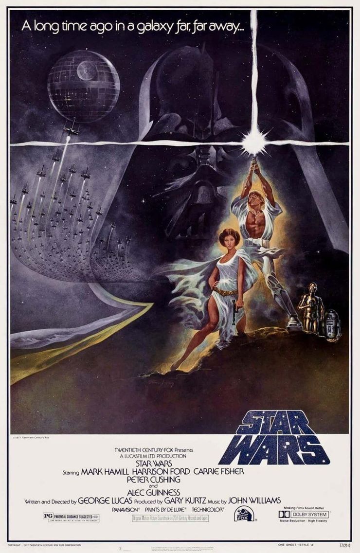 Todo acerca de Una nueva esperanza es a la vez legendario y clásico, incluidos sus carteles, todos geniales, entre ellos este cartel teatral de estilo C, una de las piezas más conocidas de Guerra de las Galaxias obra de arte alguna vez.