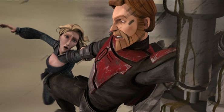 Obi-Wan logró liberar a Satine e intentó escapar desesperadamente, pero se encontró con los Super Commandos Mandalorianos y, poco después, con Maul. La conmoción de Obi-Wan ante la presencia de Maul y el hecho de que Maul casi jugara con Obi-Wan fue fantástico y tenso de ver, especialmente sabiendo lo que estaba por venir.