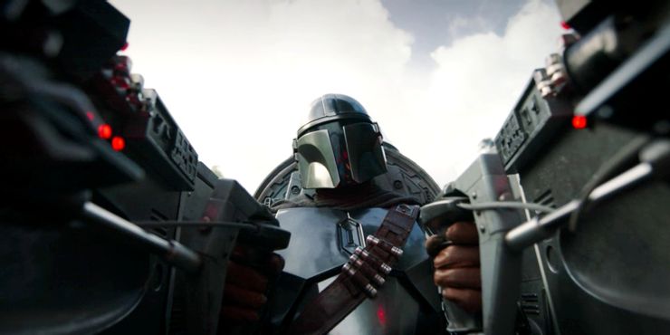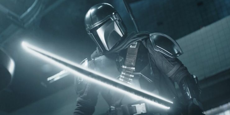 Los primeros intentos de Mando de luchar con el Darksaber son hilarantemente sin gracia. La hoja es demasiado pesada y, en ocasiones, Mando se quema con ella mientras se defiende de los combatientes enemigos.