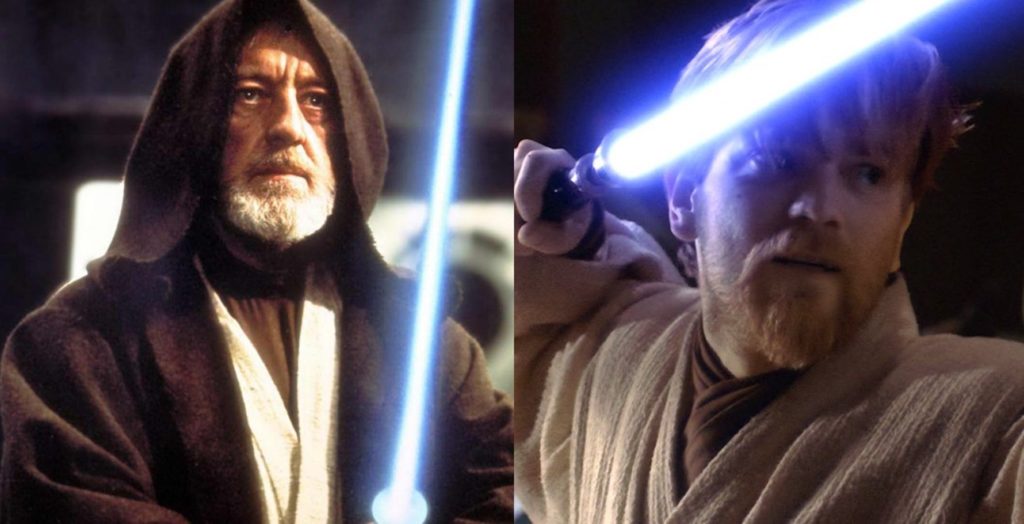 En Una nueva esperanza, vemos que la versión anterior de Alec Guinness de Obi-Wan Kenobi participa en un último duelo con sables de luz antes de ser golpeado por Darth Vader. Pero fue un duelo de sables de luz muy manso, usando un estilo de lucha que es usado más comúnmente por los usuarios más viejos y lentos de Force. Ewan McGregor nos dio el pico de las habilidades del sable de luz de Obi-Wan. Principalmente muestra sus habilidades en su intensa batalla con el general Grievous: un hombre contra un robot de cuatro brazos no fue una pelea fácil de ganar, y también, cuando salta del pozo sin fondo en el que Darth Maul lo ha arrojado, cortando triunfalmente al Señor Sith por la mitad.