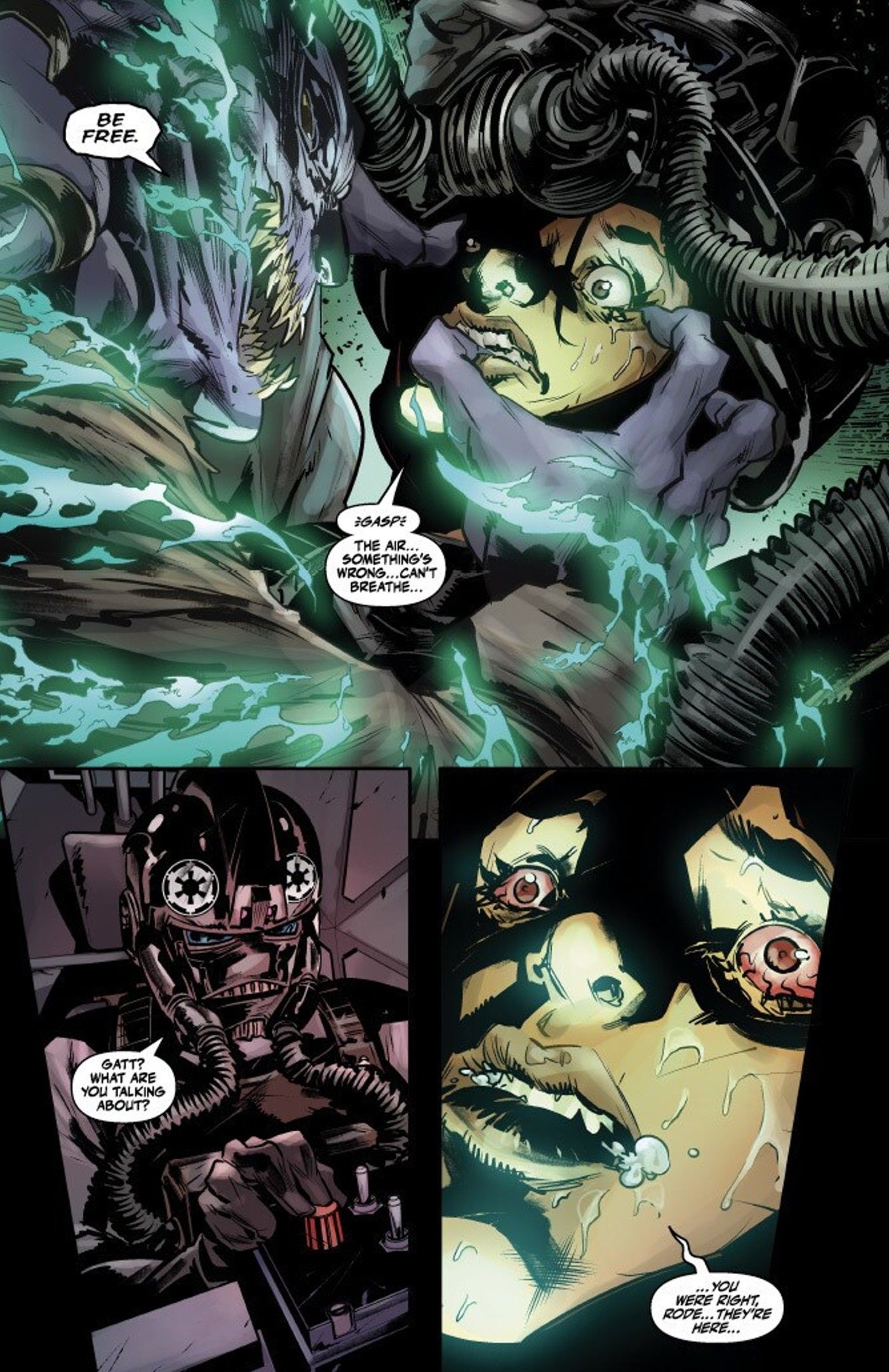 En las páginas de SDCC compartidas por StarWars.com, los fanáticos obtienen un adelanto del próximo Star Wars: Historias de la Estrella de la Muerte. Próximamente en septiembre, esta antología de tapa dura contará con una serie de historias escritas por Cavan Scott y dibujadas por Eric Powell, Vincenzo Riccardi, Soo Lee, Juan Samu e Ingo Römling. Cada historia se desarrolla dentro de los restos de la superarma destruida, y ahora los fanáticos tienen un primer vistazo a los seres macabros involucrados. Una de esas amenazas es un grupo de espíritus que atacan a un caza TIE imperial y se manifiestan en la cabina para aparentemente vengarse de los crímenes del Imperio.