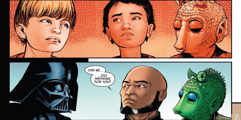 Que Darth Vader salvara las vidas de sus amigos de la infancia no fue un incidente aislado en La guerra de las galaxias: Darth Vader #50, pero algo que sucedió dos veces antes. La primera vez que Vader les salvó la vida fue cuando era Anakin Skywalker, ya que su conexión con Padmé inspiró a Sabé (la doncella de Padmé) a liberar a varios esclavos en Tatooine, incluidos Kitster y Wald.
