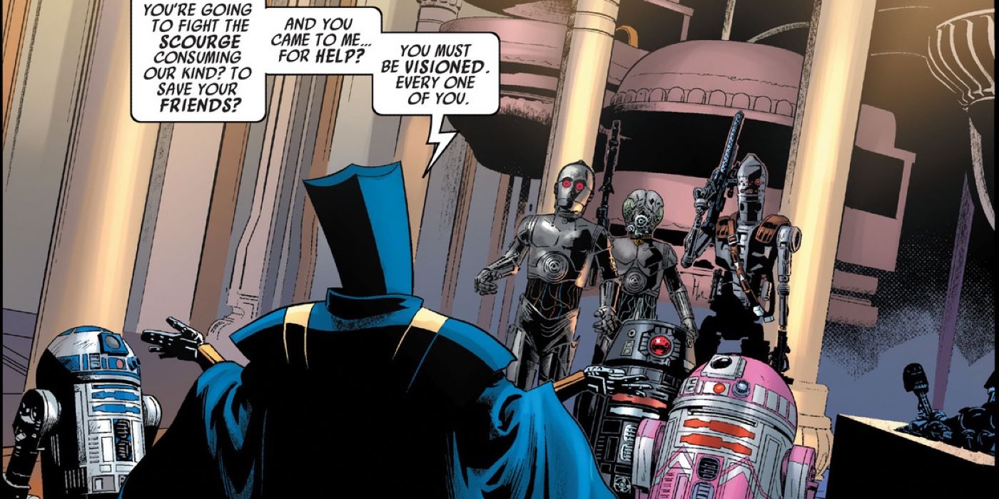 Viniendo por el metal y luego por todo lo demás, esto Droides oscuros El evento ha seguido la inteligencia de un antiguo droide que tiene como objetivo influir, controlar y, en última instancia, asimilar a todos los droides que toca, un plan maestro que ya ha afectado al socio en el crimen de R2-D2, C-3P0.