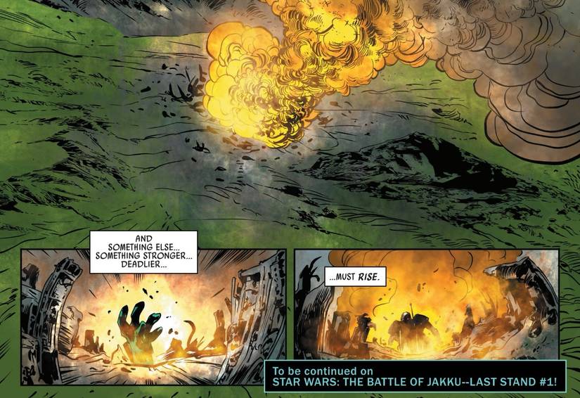 En medio de los restos de la cápsula de escape, parece el Comandante Bragh gracias a su armadura única de Purge Trooper. Sin embargo, parece una apuesta fuerte que el comandante pudo haberle dado su armadura a Adelhard para que el Moff pudiera seguir viviendo, una idea que ciertamente está respaldada por la narración continua de Adelhard en la última página de República bajo asedio #4lo que confirma que algo más fuerte debe surgir para ocupar el lugar del Imperio caído. Si bien el viejo Adelhard puede haber “muerto” en este nuevo guerra de las galaxias problema, espero ver una versión más oscura debutando en Batalla de Jakku arco final, Última resistencia.