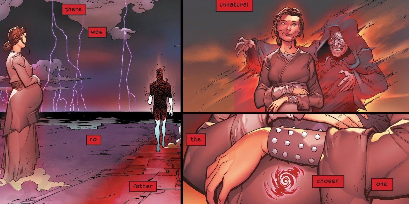 La idea fue revisitada en Charles Soule Darth Vader cómics, que parecían mostrar, una vez más, Palpatine creando a Anakin Skywalker. Revisando los eventos de su vida durante un paseo por la Fuerza, Vader ve una visión de su madre eclipsada por el Emperador Palpatine, manipulando claramente la vida en su útero. La conclusión natural fue que la madre de Anakin, Shmi, había quedado embarazada debido a un encantamiento Sith tejido por el propio Darth Sidious. Todo parecía unirse bastante bien; Como aprendiz de Plagueis, Palpatine habría aprendido a manipular a los midiclorianos para inducir la vida, y esto parecía ser evidencia de que había hecho exactamente eso.