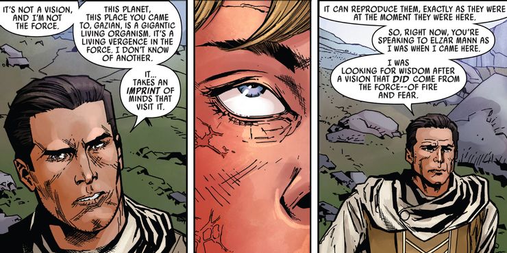 Aparte de Generaciones obvio atractivo épico del Capitán Jean-Luc Picard interactuando con el Capitán James T. Kirk, la película es mejor conocida por la introducción del Nexus, un reino extradimensional parecido al cielo donde cualquiera que ingrese puede crear cualquier experiencia que desee, ya sea una recreación de un momento real en el tiempo o algo de sus sueños. Luke Skywalker se encuentra en una versión más suave del Nexus de Generaciones a su llegada al planeta Gazian, un organismo vivo impulsado por la Fuerza en Guerra de las Galaxias #20 por el escritor Charles Soule, el artista Marco Castiello, la colorista Rachelle Rosenberg y el rotulista Clayton Cowles.