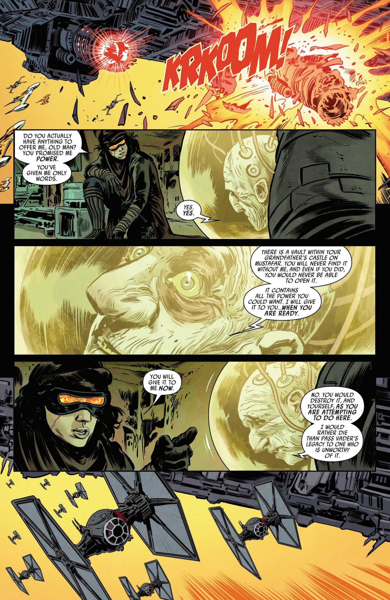 En Legado de Vader Por Charles Soule y Stefano Raffaele, el ex servidor Vaneé de Darth Vader ahora sirve a Kylo Ren entre El último Jedi y Rise de Skywalker. Habiendo compartido con el líder supremo de la primera orden la historia de su abuelo, Vaneé señala audazmente el odio a sí mismo de Kylo en Legado de Vader #5 y es paralelo a Vader’s, justo antes de prometir a Ren un poder secreto en Mustafar: