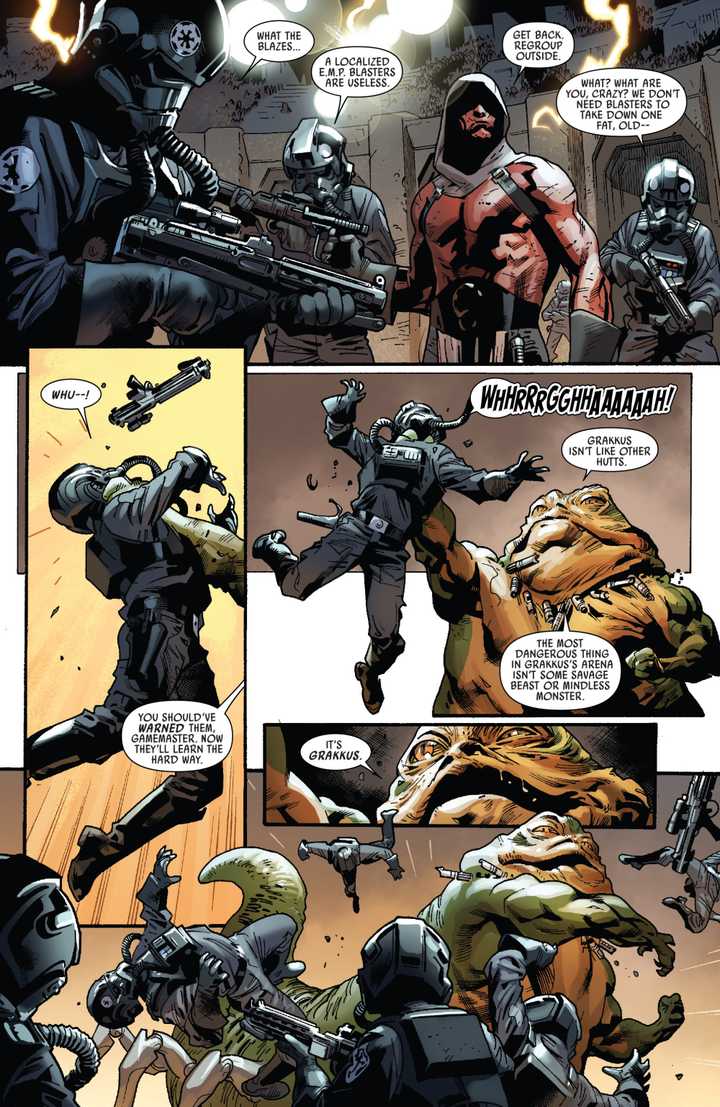 Hace 9 años, el primer gran canónico de Marvel Star Wars Run debutó Grakkus the Hutt en 2016 Star Wars #9. Basado en la luna del contrabandista de Nar Shadda durante la Guerra Civil Galáctica, Grakkus contó con algunos brazos y músculos impresionantes, mientras que también era mucho más móvil que la mayoría de las hutts a través de una variedad de patas mecánicas similares a la araña.