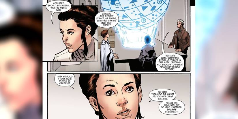 En Levantamiento de la insurgencia #2 de Alex Segura, Leonard Kirk y Rachelle Rosenberg, Mon Mothma y Leia Organa hablan con el oficial de inteligencia, el agente Behrens, sobre la amenaza actual en el sector Anoat, una región del espacio que alberga planetas como Bespin, Hoth y más mundos. Gobernado por el Moff Adelhard, el gobernador imperial ha decidido vivir negando que el Imperio haya sido destrozado. Con eso en mente, Leia propone que se forme un pequeño equipo de élite de rebeldes para evaluar la situación: