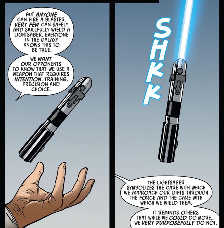 Esta exploración más profunda de los diferentes usos del sable de luz es increíblemente emocionante para el Guerra de las Galaxias galaxia. Este nuevo número no solo señala la reverencia de la Orden Jedi a la Fuerza a través del uso del sable de luz, sino que también muestra su aceptación del arma a pesar de sus limitaciones. Esto está en marcado contraste con el Imperio que usa cristales kyber para crear el súper láser de la Estrella de la Muerte. Los Sith no tienen el mismo honor reverente del sable de luz y en su lugar usan el lado oscuro para lograr sus oscuras victorias. Son mucho menos dependientes del sable de luz como su arma principal, usándolo como un símbolo mientras eligen aprovechar el poder corruptor del lado oscuro.
