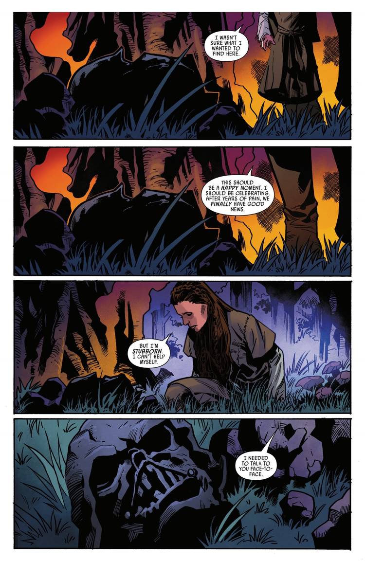 en el nuevo Star Wars: Batalla de Jukku- Insurgency Rising #1 de Alex Segura, Leonard Kirk y Rachelle Rosenberg, la Alianza Rebelde todavía está en Endor, celebrando su victoria sobre el Imperio con la destrucción de la segunda Estrella de la Muerte y la muerte de Palpatine y Darth Vader. Después de haber sido redimido al matar al Emperador y sacrificarse para salvar a su hijo, Luke tomó el cuerpo de Vader para quemarlo en una pira funeraria, como se ve en El regreso del Jedi. Ahora, este nuevo número revela a alguien más que visitó los restos aún humeantes de Vader después de Luke: