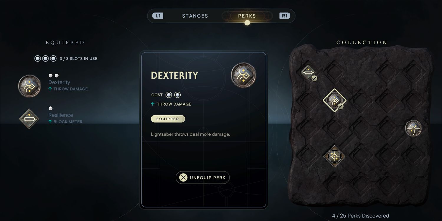 Las ventajas son una nueva mecánica en Star Wars Jedi: Superviviente eso no estaba en su antecesor. Las ventajas pueden permitir a los jugadores cambiar la forma en que juegan, o hacer que Cal sea un poco más resistente o golpee más fuerte. Lo que el juego no necesariamente le dice al jugador es que las ventajas deben estar equipadas, incluso si es la primera que Cal ha recibido en el menú.