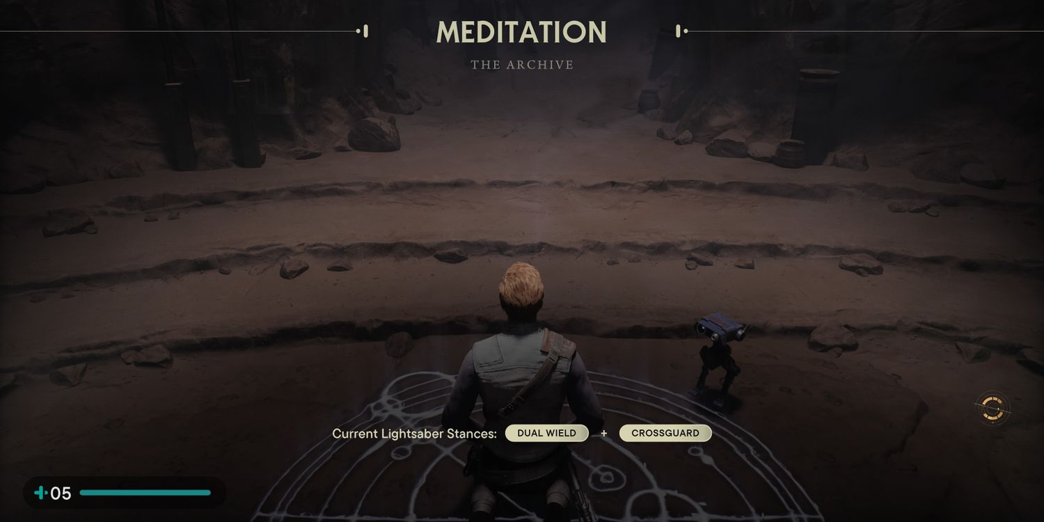 Los Puntos de Meditación son el equivalente a una hoguera en un juego de Souls. Controlan el progreso de Cal, mejoran sus habilidades, restauran su salud si los jugadores deciden hacerlo y pueden actuar como puntos de viaje rápido en Star Wars Jedi: Superviviente.