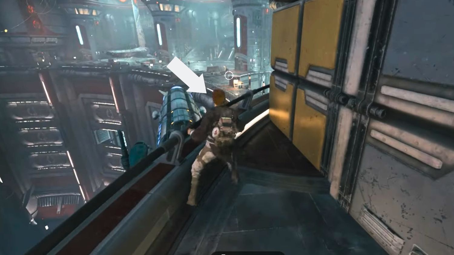 Después de moverse a lo largo de la tubería corta que, desafortunadamente, dejará a Cal en un grupo de Stormtroopers, continúe y acabe con todos. Una vez que todos los enemigos hayan sido eliminados, usando uno de los diferentes Comer: sobreviviente posiciones de combate, habrá un conjunto de escaleras detrás de donde lucharon los Stormtroopers.