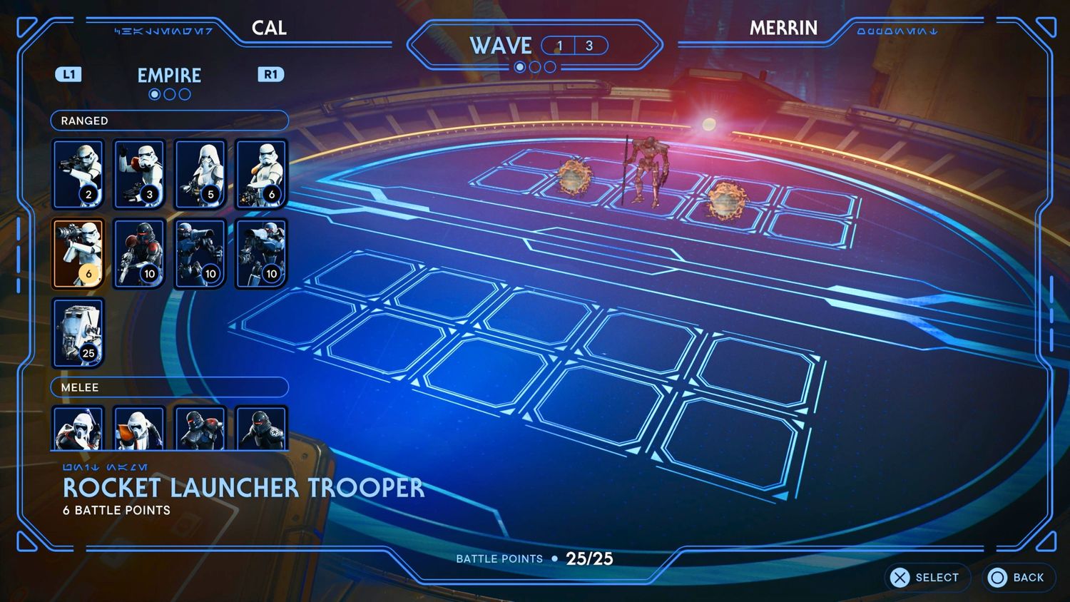 Pase lo que pase, el enfoque principal debe ser usar unidades más baratas y fáciles desde el principio y ahorrar puntos de batalla para los enemigos más fuertes que vendrán más adelante. No olvides que colocar unidades también es un aspecto de la holotáctica y, aunque no parezca importante, aquí se pueden aplicar algunas estrategias. Dispersar a los enemigos siempre es inteligente, por lo que es probable que el daño a distancia no golpee a varias unidades y, hablando de unidades a distancia, asegúrese de que las unidades de Cal se coloquen en la parte de atrás, lejos de los enemigos cuerpo a cuerpo que se aproximan. Derrotar a todos los oponentes en Holotactics recompensará a los jugadores con el logro y el trofeo Gambler en Star Wars Jedi: Superviviente.