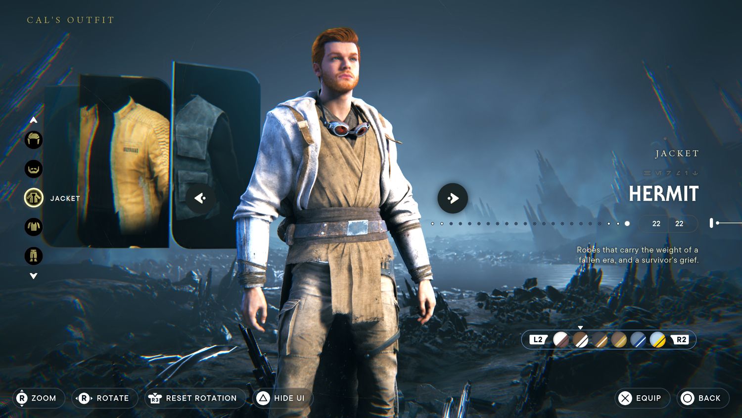 Por abriendo el menú principal del juego y seleccionando la pestaña Personalización, los jugadores pueden modificar el atuendo de Cal. Esta opción está disponible desde el principio del juego, por lo que nada impide que los jugadores personalicen a Cal directamente. La personalización también es mucho más profunda de lo que era en Jedi: orden caíday los jugadores ahora pueden modificar la camisa, la chaqueta y los pantalones de Cal, así como su peinado y vello facial.