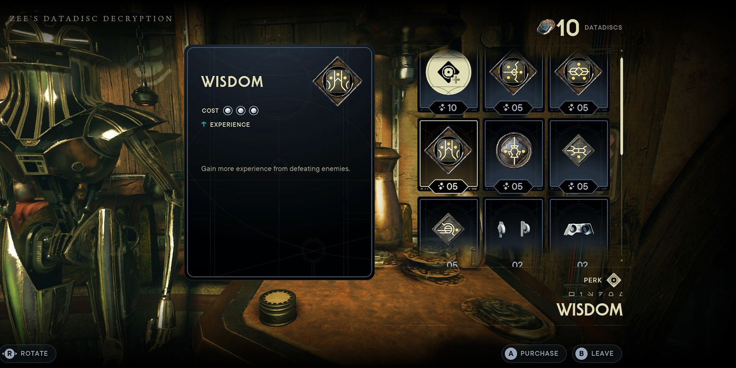 La ventaja Sabiduría se desbloquea en Mentecato después de desbloquear el Zee residente para Salón de Pyloon. cuesta 5 discos de datos.