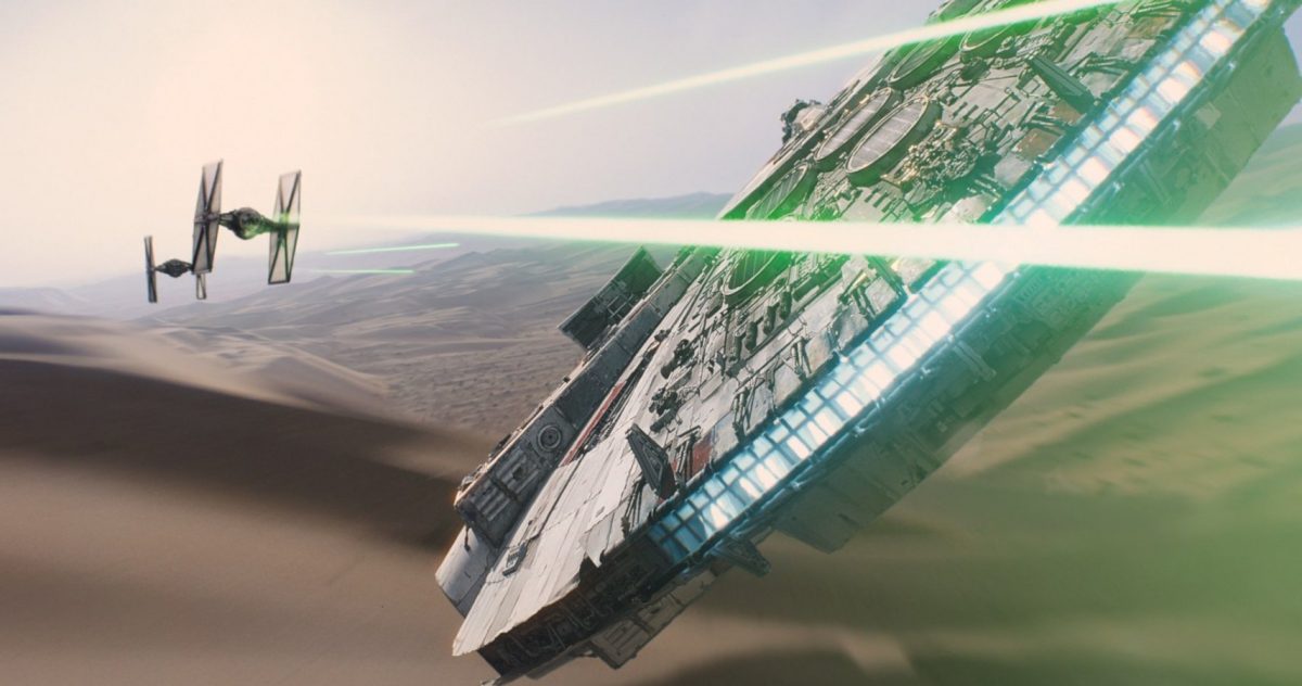 TIE Fighters atacando al Halcón Milenario en Star Wars Episodio VII El Despertar de la Fuerza