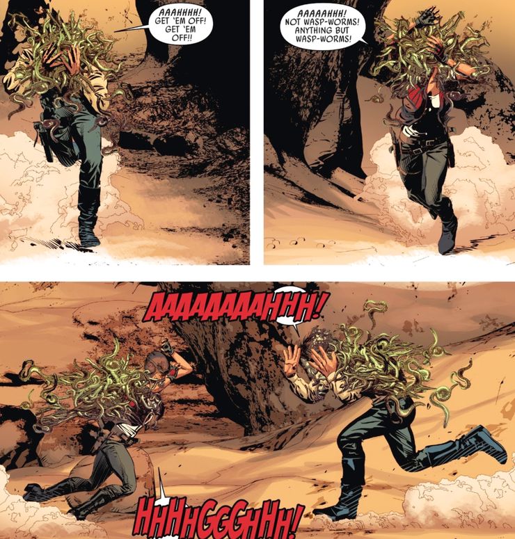 Esta nueva conexión entre el miedo a las serpientes de Han Solo y el miedo de Indy a las serpientes es realmente asquerosa (y muy divertida). Del mismo modo, también es un nuevo lazo entre la Doctora Aphra, quien fue creada específicamente con Jones en mente, sirviendo como una gran inspiración para su personaje. Además, también se debe tener en cuenta que una de las mejores partes de esta batalla fue que Han y Aphra dispararon a los nidos intencionalmente, pensando que el otro era un idiota por colocarse justo debajo de ellos.