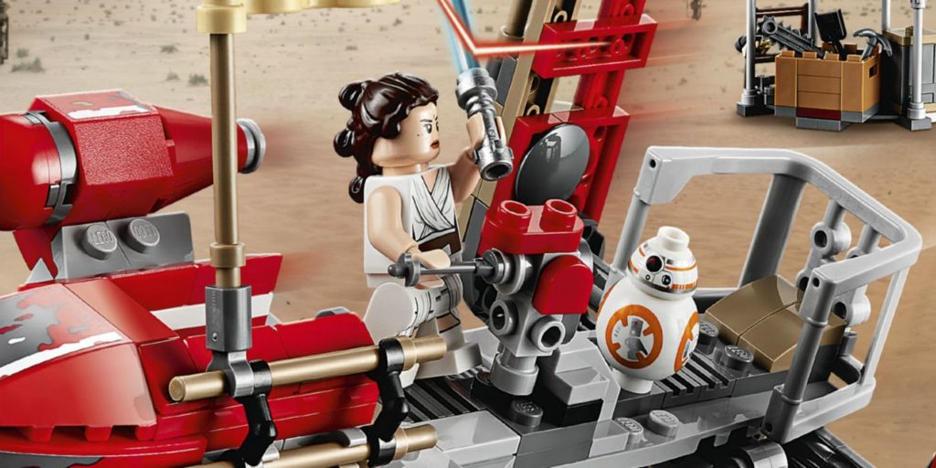 Entre las imágenes publicadas por LEGO se incluyen sets para Kylo Ren's Shuttle, Millennium Falcon, un Resistance A-Wing y Y-Wing Starfighter, y un set llamado "Pasaana Speeder Chase". Este último set, que tiene lugar en el planeta desierto titular que aparece en la película, podría basarse en una escena presente en el primer trailer de TROS, o tal vez no, ya que el set muestra a Rey y BB-8 frente a un equipo de soldados de asalto, como opuesto al tiro que vimos en el avance que presentaba a Poe, Finn y C-3PO. Los otros conjuntos son notables principalmente por sus minifiguras que representan nuevos personajes, incluidos el General Pryde de la Primera Orden, la anti heroína Zorri Bliss y dos miembros de los misteriosos Caballeros de Ren. En particular, un personaje completamente nuevo aparece en el set del Halcón Milenario, un alienígena llamado Boolio, que parece estar ayudando a la Resistencia.