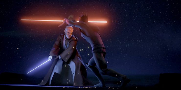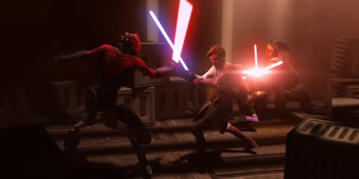Donde los duelos más famosos son largos con una extensa coreografía, esta pelea de Star Wars: Rebeldes se acaba en segundos. Finalmente, Maul se reúne una vez más con un viejo Obi-Wan para vengarse. Maul intenta enfrentarse a Obi-Wan usa la misma falla en el diseño del sable de luz de Maul de La amenaza fantasma.