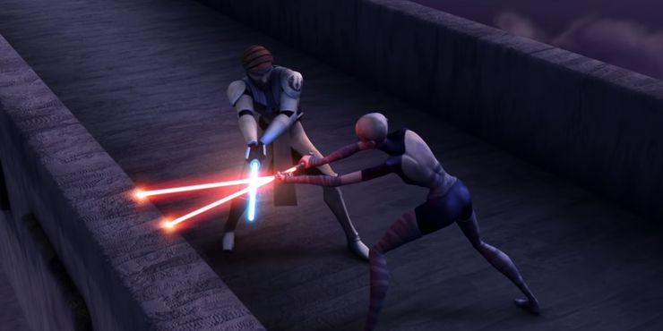 Afortunadamente, Obi-Wan es salvado por un aliado poco probable: Asajj Ventress. Ver a esos dos trabajar juntos para luchar e incluso derrotar a Maul y Savage es asombroso. Muestra la habilidad de Obi-Wan para usar su ira y brinda a los fanáticos la rara oportunidad de ver a Obi-Wan empuñar un sable de luz rojo.