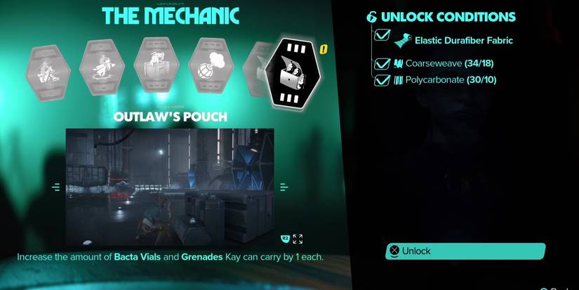 Una vez que tengas todos los materiales en su lugar, ve a la pantalla de Habilidades del Mecánico y verás el signo de exclamación amarillo que notifica que la bolsa está disponible para fabricar. Una vez que la habilidad esté finalmente desbloqueada, la capacidad del frasco de bacta y la granada de Kay aumentará en dos cada una cuando se combine con la de la bolsa del canalla. Tan pronto como encuentres a Shuma por primera vez en Forajidos de Star WarsTejido Durafiber elástico y esta útil habilidad en el juego estará prácticamente a tu disposición.