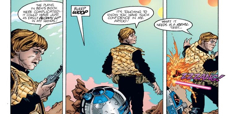 Canon Guerra de las Galaxias los cómics probablemente mostrarán de Luke Skywalker la construcción del sable de luz en detalle también en un cómic futuro, por lo que es desafortunado que un arma tan importante no se muestre construida en la continuidad de Legends a través de la sombras del imperio serie cómica