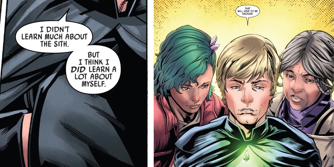 Además, el intento de Luke de curar este trozo de kyber rojo es efectivamente un preludio de su duelo con Vader en El regreso del Jedi. Después de todo, Luke confirma en el número anterior que quería aprender cómo purificar la corrupción kyber para poder algún día usar las mismas técnicas para purificar a otra persona (su padre). Con ese fin, el hecho de que este sable de luz verde resalte perfectamente su futuro éxito en el Guerra de las Galaxias La línea de tiempo es muy emocionante.