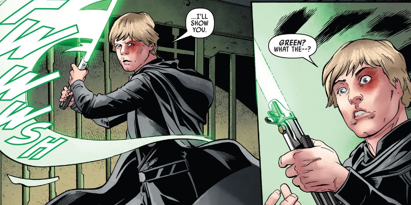 Guerra de las Galaxias ha revelado la primera vez que Luke Skywalker empuñó su sable láser verde. Teniendo lugar entre El imperio Contraataca y El regreso del JediLuke Skywalker ha continuado su camino Jedi en lo canónico Guerra de las Galaxias cómics de Marvel. Esto incluye sus intentos actuales de purificar un trozo de kyber Sith rojo corrupto, lo que resultó en que el espíritu de Luke recibiera una visión crítica en la Fuerza.