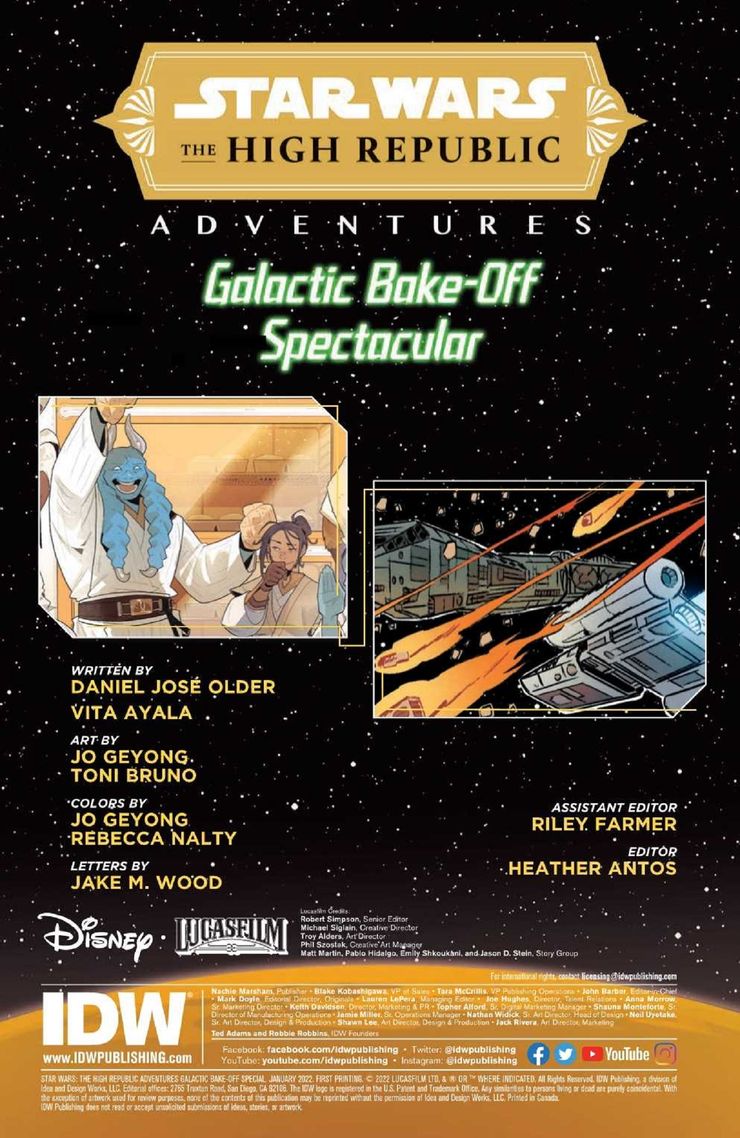 Esta Espectacular horneado galáctico es una rama del título en curso Star Wars: Las aventuras de la Alta República publicado por IDW Publishing, que es escrito regularmente por Daniel José Older (Star Wars: último disparo). Teniendo lugar durante la era de la Alta República que se establece 200 años antes de los eventos de Star Wars: Episodio I – La amenaza fantasma, el aventuras La serie se centra en los viajes de los jóvenes padawans bajo la tutela de Yoda a medida que aprenden lecciones poderosas, como cómo aprovechar su miedo en lugar de rechazarlo.