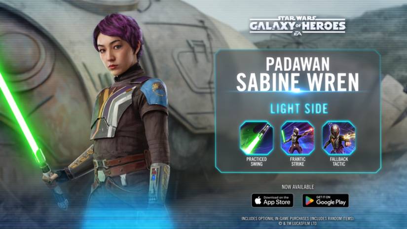 Padawan Sabine Wren viene con tres habilidades: Practiced Swing como ataque con sable de luz, Frantic Strike que es un baster/sable de luz y Fallback Tactic que está inspirado en su momento en Ahsoka episodio 4 cuando Sabine intenta usar la Fuerza, falla y luego ataca a Shin Hati con uno de sus cohetes de muñeca. Sin embargo, la revelación de Padawan Sabine Wren de EA también aclara por qué este nuevo personaje de Sabine no tiene la etiqueta de alineación Jedi en el juego: “A pesar de que se la conoce como la padawan de Ahsoka, todavía le queda mucho camino por recorrer en su entrenamiento para ser llamada Jedi. Además, el equilibrio del juego”.
