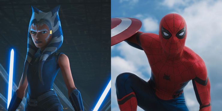 Hay dos eras de Ahsoka Tano en Guerra de las Galaxias; su lado más joven, más feroz, más inmaduro de Las Guerras Clon y su salida más sabia y experimentada de rebeldes y el mandaloriano. Peter Parker sería amigo de ambos.