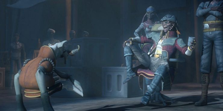 Los sinvergüenzas adorables son algo así como una especialidad en el Guerra de las Galaxias universo, y Hondo Ohnaka encaja a la perfección. Hondo es la versión de su galaxia de Jack Sparrow: un pirata espacial bromista que sabe cómo pasar un buen rato. Es encantador incluso cuando es engañoso, y considera a los Jedi como “amigos” incluso mientras los retiene para pedir rescate.