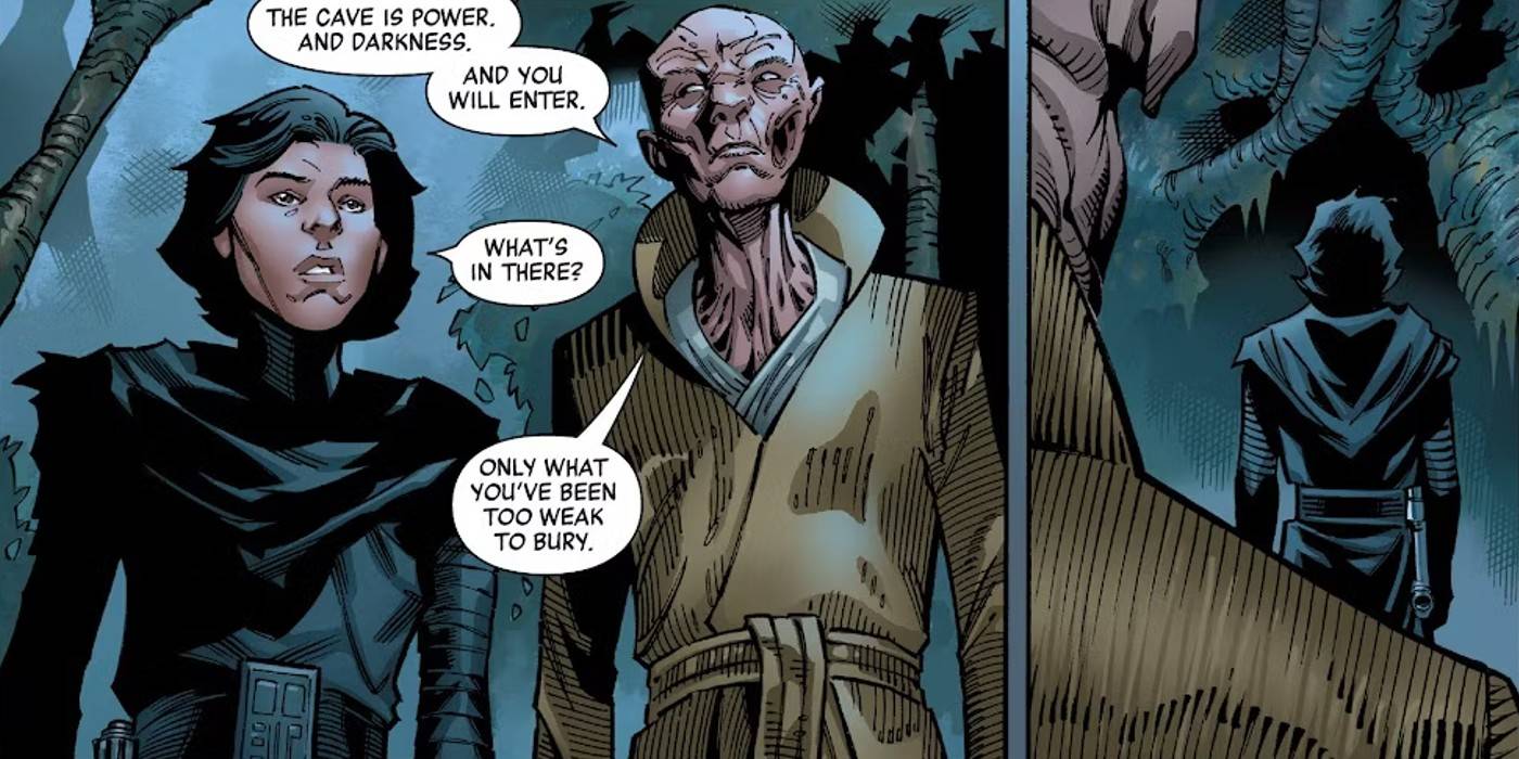El giro de Ben al lado oscuro coincidió con su destrucción del Templo Jedi de Ossus, que fue 6 años antes. La fuerza despierta. Esto significa que Ben Solo, ahora Kylo Ren, entrenó con Snoke durante 6 años antes de que lo presentaran por primera vez. Snoke entrenó a Kylo de muchas maneras, incluso usando a los Caballeros de Ren como un buen lugar para perfeccionar sus habilidades oscuras. En un momento de este entrenamiento, Snoke llevó a Kylo Ren a Dagobah, donde el joven Jedi oscuro destruyó la cueva del lado oscuro a la que su tío Luke había entrado casi 30 años antes en Guerra de las Galaxias.