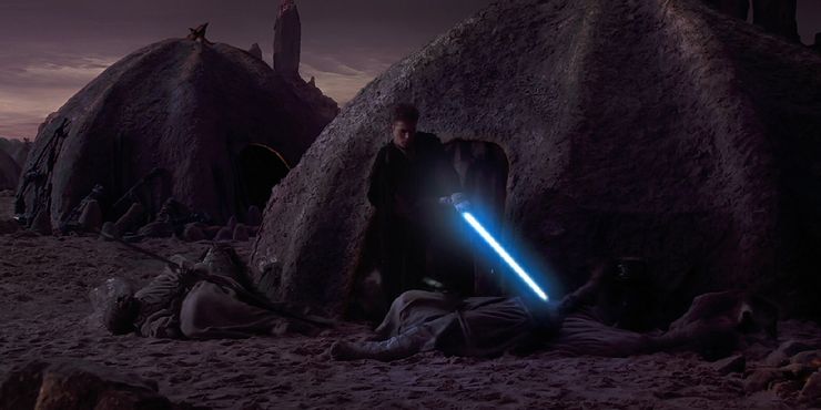 El primer roce verdadero de Anakin con el lado oscuro ocurrió cuando encontró a su madre en Tatooine, que había sido secuestrada por Tusken Raiders. Logró infiltrarse en el campamento con la intención de rescatarla y sacarla a salvo, pero ella murió en sus brazos poco después de verle la cara por última vez.