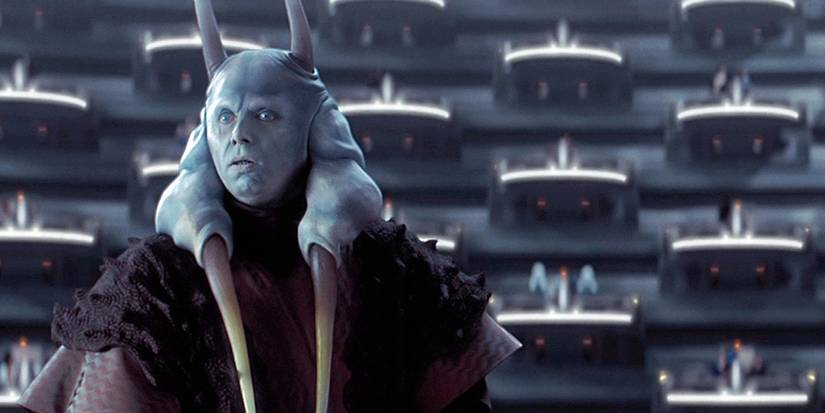 Mas Amedda, político chagriano que sirvió en el Senado desde la época del Canciller Valorum en adelante, fue uno de los aliados políticos más cercanos de Palpatine. Demostró ser útil durante el ascenso de Palpatine al poder, ayudándolo a navegar por las traicioneras aguas de la política galáctica y presenciando la ascensión del Lord Sith a Emperador. Permaneció implacablemente leal a Palpatine durante las siguientes décadas, pero, curiosamente, los droides del Emperador no se le acercaron para participar en la Operación Ceniza después de la muerte de Palpatine en El regreso del Jedi.
