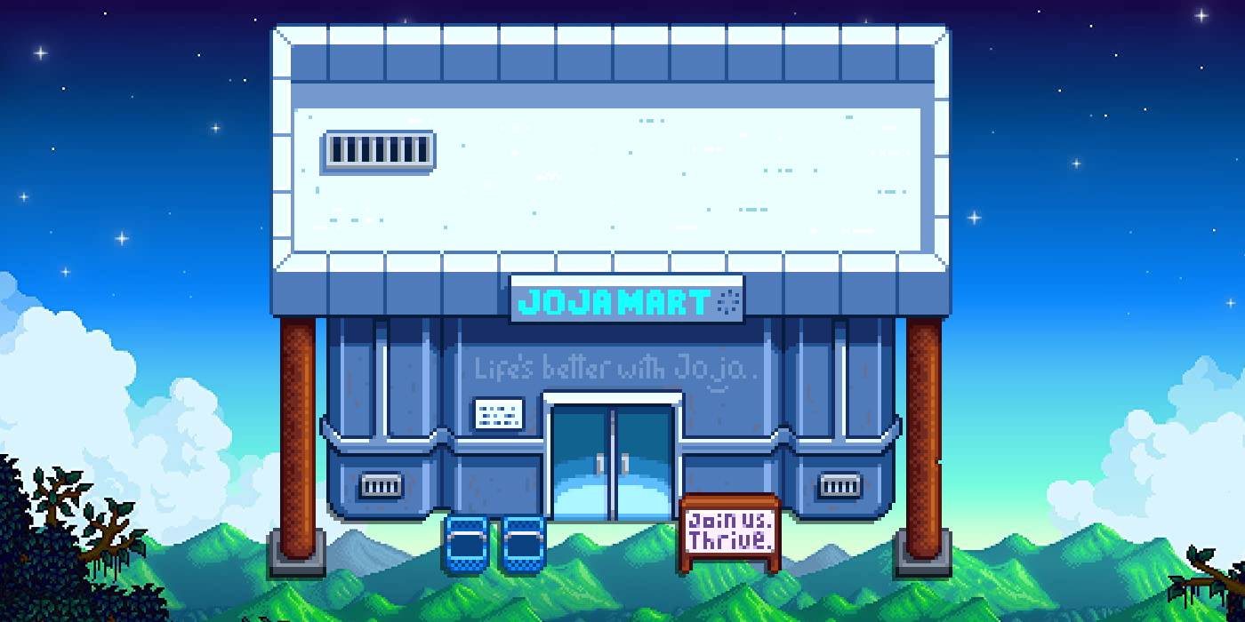 JojaMart está afiliado a Joja Corporation, una enorme megacorporación que parece tener en sus manos todo tipo de pasteles. De hecho, las escenas iniciales de Valle stardew revelan que el personaje del jugador alguna vez fue empleado de Joja, pero dejó atrás la vida corporativa para hacerse cargo de la granja de su abuelo.