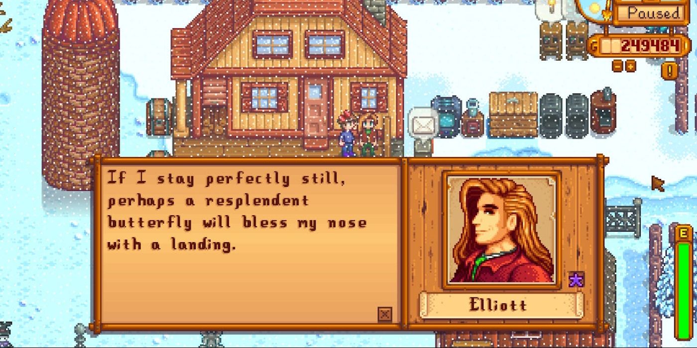 “/> Valle stardew Elliot es un escritor que vive en la playa. Ha venido a la ciudad, al igual que Leah, con la esperanza de aislarse de las distracciones mientras trabaja con dedicación en una novela en la que el protagonista puede ayudarlo. Elliot es distraído y amable, con tendencia a las conversaciones dramáticas. También está más alejado del pueblo, ofreciendo un ambiente único. Valle stardew Candidato a matrimonio para cualquiera que quiera algo más parecido a una novela romántica.