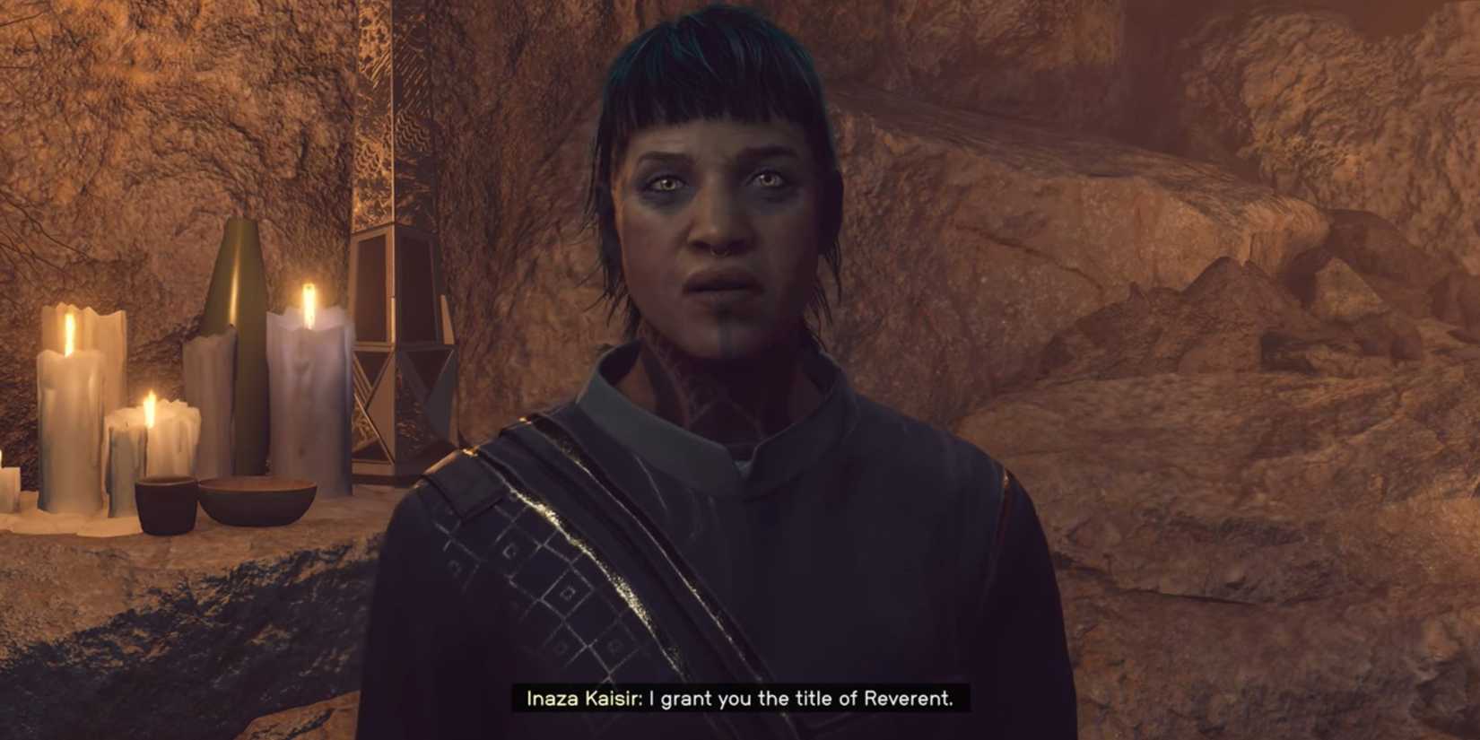 Una vez decidido, coloque las dos efigies elegidas en los altares designados. Inaza te dará un título cuando hables con ella nuevamente afuera de la puerta, solidificando tu posición como miembro de la Casa de Va’ruun. Sal del Camino de la Serpiente a través de los arcos cercanos, luego toma el ascensor para encontrarte con Malibor en el Cabina de barco de luto.