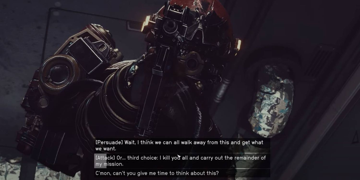 Esta decisión puede ser un poco más interesante, ya que hay que Miente con éxito a los piratas para que te permitan abordar el antiguo barco de Hurst.. Los sistemas del barco en campo estelar En realidad, han resultado dañados, lo que provocó que los piratas te pidieran ayuda, sorprendentemente. Entablar una conversación sobre el vehículo abandonado revela una verdad impactante: Hurst había estado alineado con los piratas desde el principio..