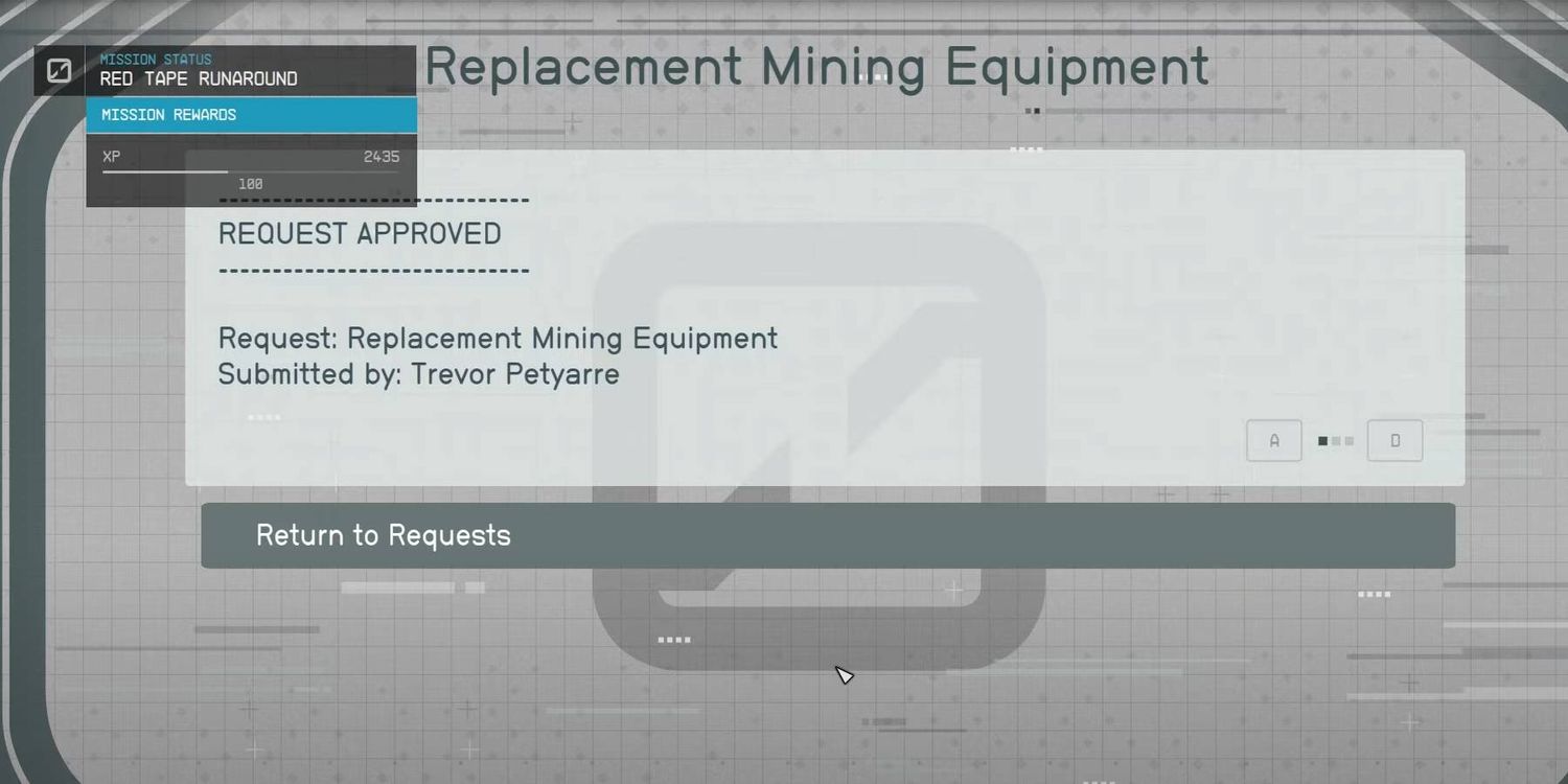 “/> Volviendo a Pedro abre un nuevo diálogo donde finalmente te permitirá acceder a su computadora para obtener el acceso que estabas buscando en primer lugar. Ir a la solicitud “Repuesto de Equipo Minero” colocado por Trevor y Apruébalo a terminar oficialmente la misión en campo estelar. Además de 3000 créditostu personaje gana una gran cantidad de XP con nuevas actualizaciones de misiones que te llevan hacia otra meta.