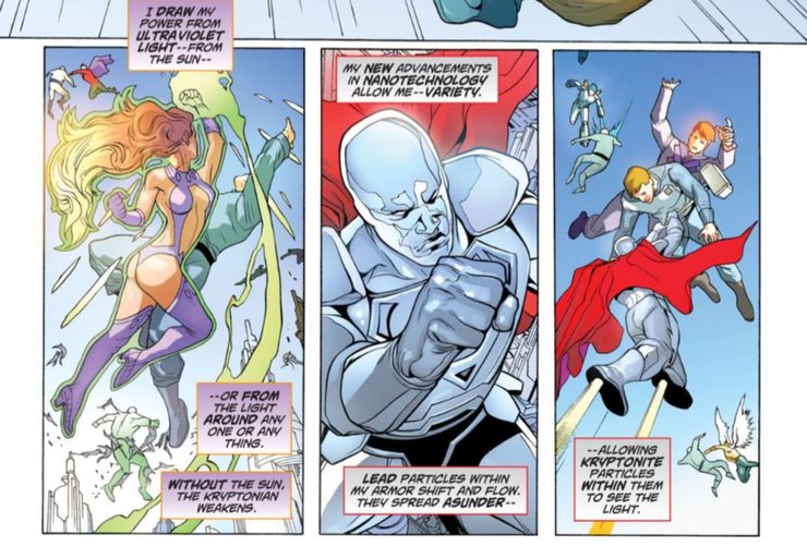 Pero incluso con toda la fuerza del mundo, hay muchas maneras de derrotar a un kryptoniano, y la Liga de la Justicia lo demostró en Superhombre #683 por James Robinson, Renato Guedes y Jorge Correa. La Liga se ve obligada a enfrentarse a la ciudad de Kandor, recientemente resucitada, que se ha instalado en la tierra. Varios kryptonianos mataron a policías mientras reunían a los villanos en la galería de pícaros de Superman y, dado que la autoridad de Kandor se niega a entregarlos, la Liga ha llegado para detenerlos ellos mismos. Sin otra opción, estalla una pelea entre la Liga y las fuerzas de Kandor. Cada héroe se ve obligado a enfrentarse a un kryptoniano propio, obligándolos a idear algunas contramedidas inteligentes para desarmar a sus enemigos. Starfire señala que con su biología particular, obtiene poderes al atraer la luz del sol o la luz alrededor de cualquier otra cosa. Al robarle a un kryptoniano su luz solar, ella puede vencerlo fácilmente.