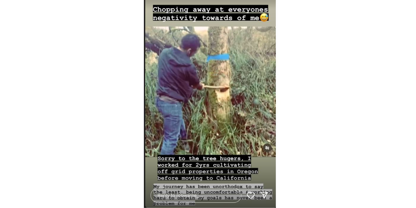 “/> Statler estuvo de acuerdo con ellos. Ella respondio, “Hablando en serio,” con un emoji de cara con una mueca. Mientras tanto, Rob decidió publicar su propia historia de Instagram en respuesta a la historia de Statler. Robar compartió un video de él cortando un árbol con un hacha grande. Rob subtituló el video, “Cortando la negatividad de todos hacia mí“. Rob procedió a disculparse con el “abrazadores de árboles” y explicó que había trabajado durante dos años cultivando propiedades fuera de la red en Oregón antes de mudarse a California. Reveló que su “viaje“había sido muy poco ortodoxo. Lo llamó “incómodo” pero admitió que estaba trabajando duro para lograr sus objetivos, lo que nunca había sido un problema para él.
