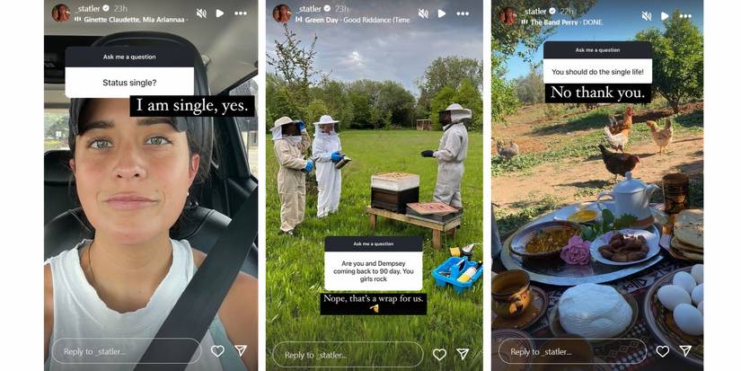 Statler viajó recientemente a Canadá y publicó varias fotos, de las cuales una estaba con una mujer misteriosa. Sus seguidores pueden haberse preguntado si Statler tenía una nueva novia, así que cuando un fan le preguntó a Statler si su estado actual era “solteroDurante una reciente sesión de preguntas y respuestas, Statler respondió: “Estoy soltera, sí. Statler también respondió a varias otras preguntas sobre su relación considerando que ya rompió su acuerdo de confidencialidad y afirmó que no filmó el Tell All. Se le preguntó si ella y Dempsey volverían al programa y Statler escribió: “No, eso es todo por nuestra parte..”