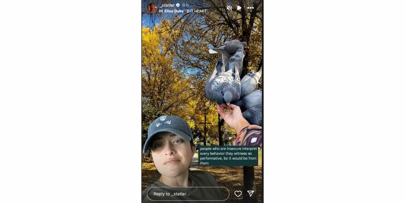 Sin embargo, fue Dempsey quien intentó ganarse la simpatía demostrando que Statler estaba arruinando sus vacaciones con su estado de ánimo negativo. Incluso actuó sin apoyo hacia Statler que estaba sufriendo un ataque de pánico. Statler cree que fue la inseguridad de Dempsey la que la llevó a parecer desalmada. Publicó una foto de ella con una mano alimentando palomas y la subtituló: “Las personas inseguras interpretan cada comportamiento que presencian como performativo, porque sería a partir de entonces.” Statler aparentemente estaba denunciando el intento de Dempsey de hacer que Statler pareciera que hace una montaña con un grano de arena cuando describe su salud mental.