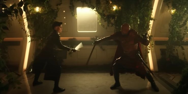 Desde una perspectiva detrás de escena, la pelea de espadas de Ortegas se siente como un guiño conmovedor a la mejor hora (no) de George Takei en un Star Trek camisa. Aunque Sulu disfrutó de muchos aspectos destacados durante su carrera en la Flota Estelar, pocos son tan memorables como blandir salvajemente un florete alrededor de una nave estelar, con el sudor brillando en sus abdominales perfectamente tonificados. Al recordar aquella famosa escena, Nuevos mundos extraños paga debidamente su deuda de “The Naked Time”.
