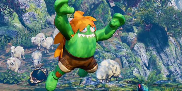 El truco de Blanka siempre ha sido que, a pesar de su temible apariencia, realmente es un buen tipo por dentro. Su disfraz de historia refleja esto bien; mantiene los elementos del diseño de Blanka que lo hacen icónico, pero también lo suaviza un poco para que parezca más amigable.