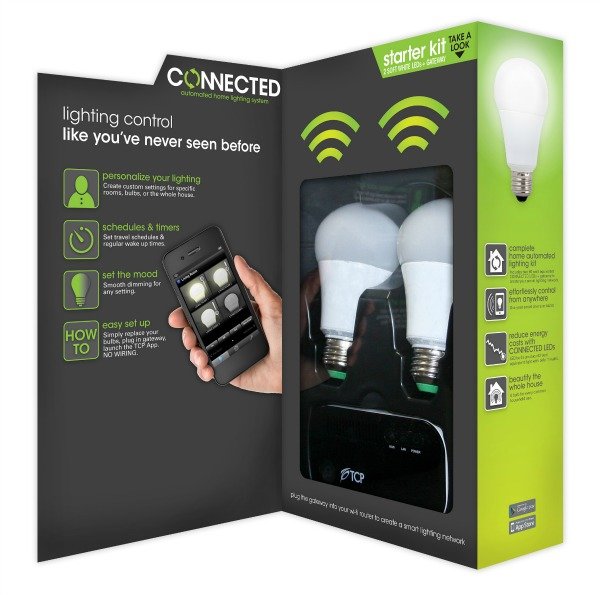 Ya que está iluminando su casa con LED de bajo consumo, llévelo al siguiente nivel con un Conectado por el sistema de iluminación inteligente TCP. Por supuesto, puede encender y apagar las luces, pero también es un sistema de casa inteligente plug-and-play que puede ejecutar varios temporizadores para la seguridad del hogar, un despertador, una noche de cine o una cena romántica.