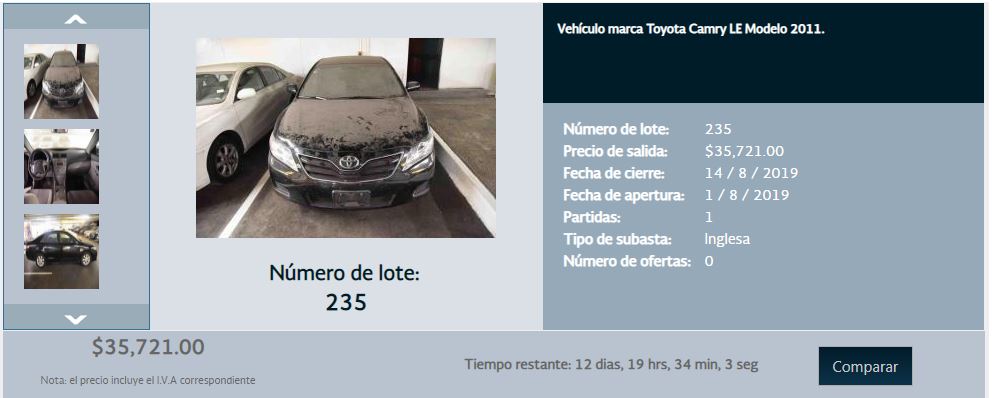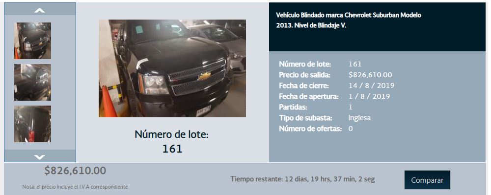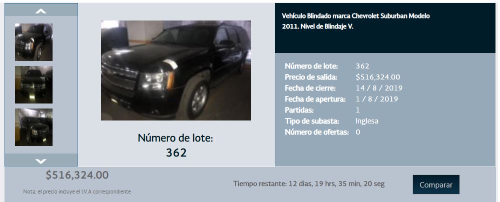 Este jueves arrancó, vía electrónica, la primera subasta de 76 vehículos propiedad del Senado de la República, a cargo del Servicio de Administración y Enajenación de Bienes (SAE).